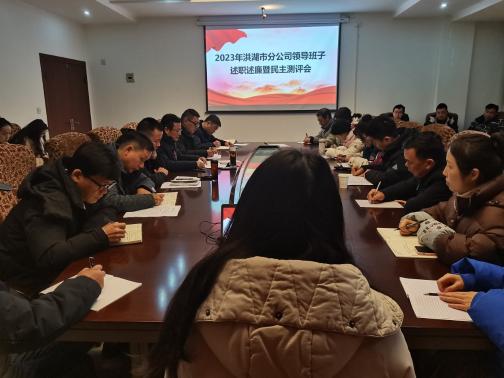 1月23日上午,洪湖市分公司召開2023年度班子成員述職述廉測評會。荊州市分公司經理助理朱曉紅帶隊參
