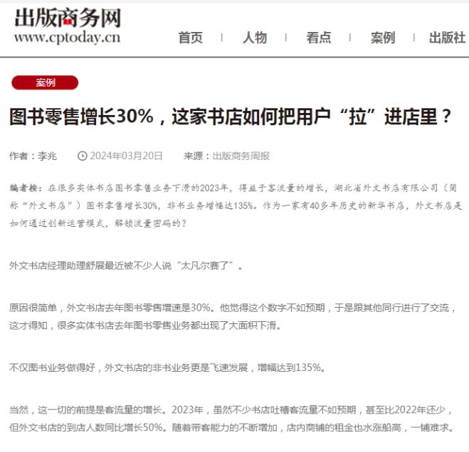 出版商務周報∣圖書零售增長30%,這家書店如何把用戶“拉”進店里? 2024/03/22