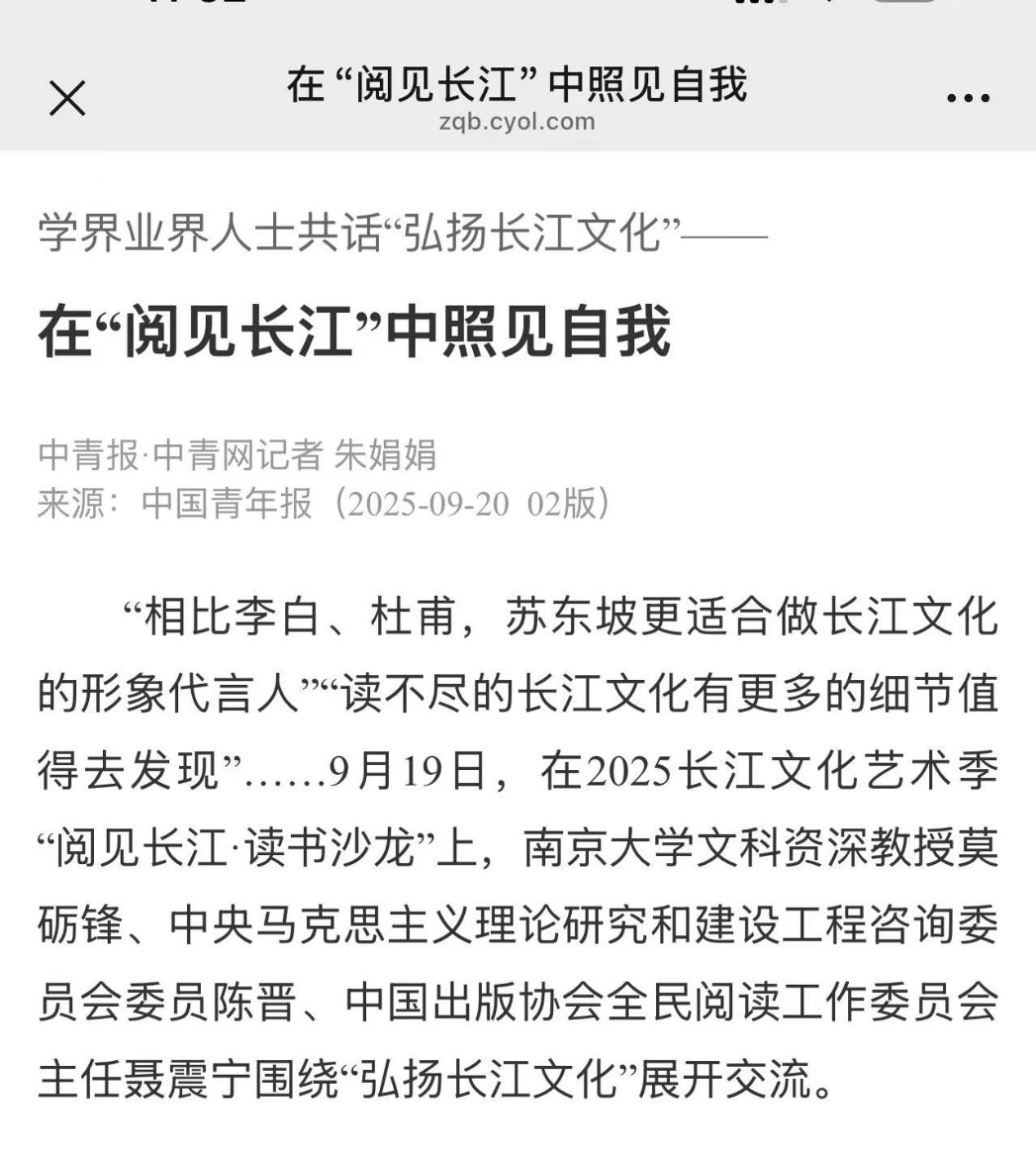 中國青年報 | 學界業界人士共話“弘揚長江文化”——在“閱見長江”中照見自我 2025/09/20
