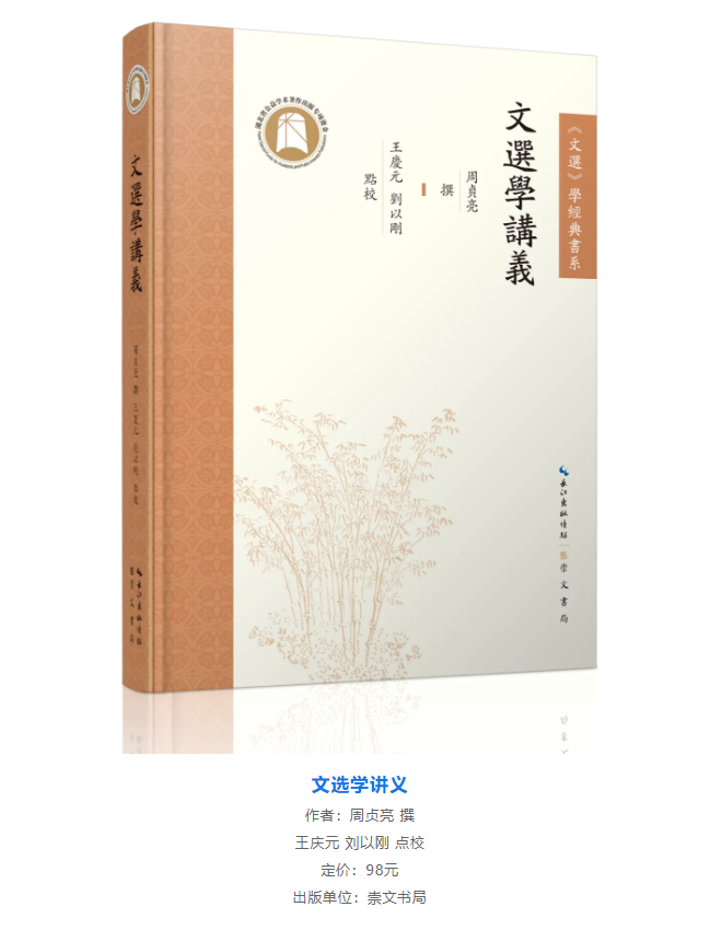 編輯推薦:周貞亮與駱鴻凱同為現代“文選學”大家,駱鴻凱之“文選學”早已風靡大江南北,周貞亮之“文選學”卻因各種原因而知者甚少。本書為周貞亮之武漢大學期間《文選學講義》的首次整理出版,分上下二編。上編十章,講述《文選》學之起源、意義、編纂義例以及文體、作家、源流等。下編三章,以重要作家作品為例,系統講述《文選》研究之方法。本書為現代《文選》學奠基作之一,王立群《現代〈文選〉學史》指出:“現代《文選》學的誕生當以周貞亮《文選學》與駱鴻凱《文選學》的問世為標志。”武漢大學王慶元、劉以剛兩位教授以河南大學圖書館所藏本為底本,將之首次整理出版,并附錄周貞亮《梁昭明太子年譜》。(陶永躍、李艷麗)