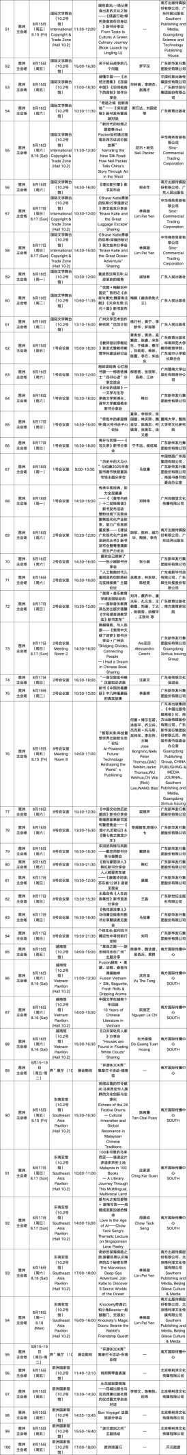 其中,“閱·世界”(國際文化展廳)設置主題館、越南主賓國館、東南亞國家館、歐洲國家館、國際品牌出版館等特色展館;“閱·未來”(品牌出版展廳)設置中國出版集團館、四川主賓省館、廣東館、數字科技館等展館;“閱·生活”(閱讀生活展廳)設置少兒館、品牌出版館、渡渡潮活館等展館;“閱·廣州”(羊城書展展廳)設立數字出版、文化創意、休閑閱讀、特色閱讀、讀懂廣州等展館。