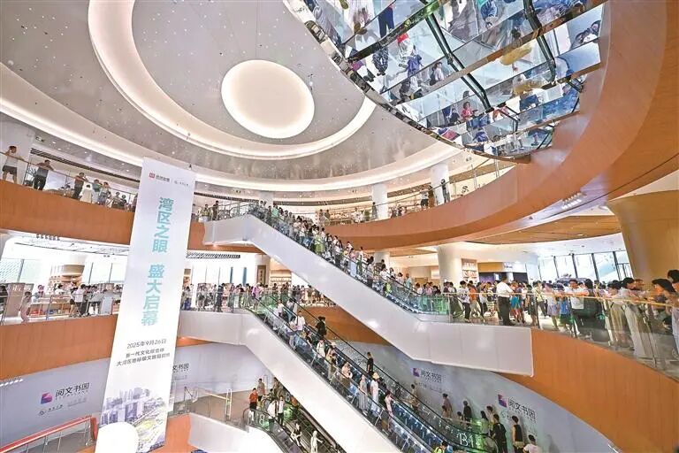“太喜歡在這里看書(shū)了,大大的落地窗把詩(shī)和遠(yuǎn)方框進(jìn)了我的眼里。”市民鄭女士告訴記者。國(guó)慶長(zhǎng)假第一天,“灣區(qū)之眼”以12.6萬(wàn)人次的客流量,印證了文化空間的強(qiáng)大吸引力。