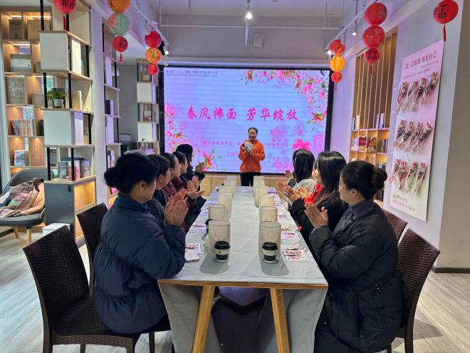 3 月 5 日上午,在第 115 個 "三八" 國際勞動婦女節來臨之際,英山縣分公司在連鎖店二樓閱讀體驗空間舉辦 "春風拂面 芳華綻放" 主題活動。縣婦聯副主席阮程碩燦、分公司全體女員工及熱心讀者代表齊聚書香氤氳的閱讀體驗空間,以文化浸潤心靈,用創意禮贊芳華,展現新時代女性在文化陣地上的獨特風采。