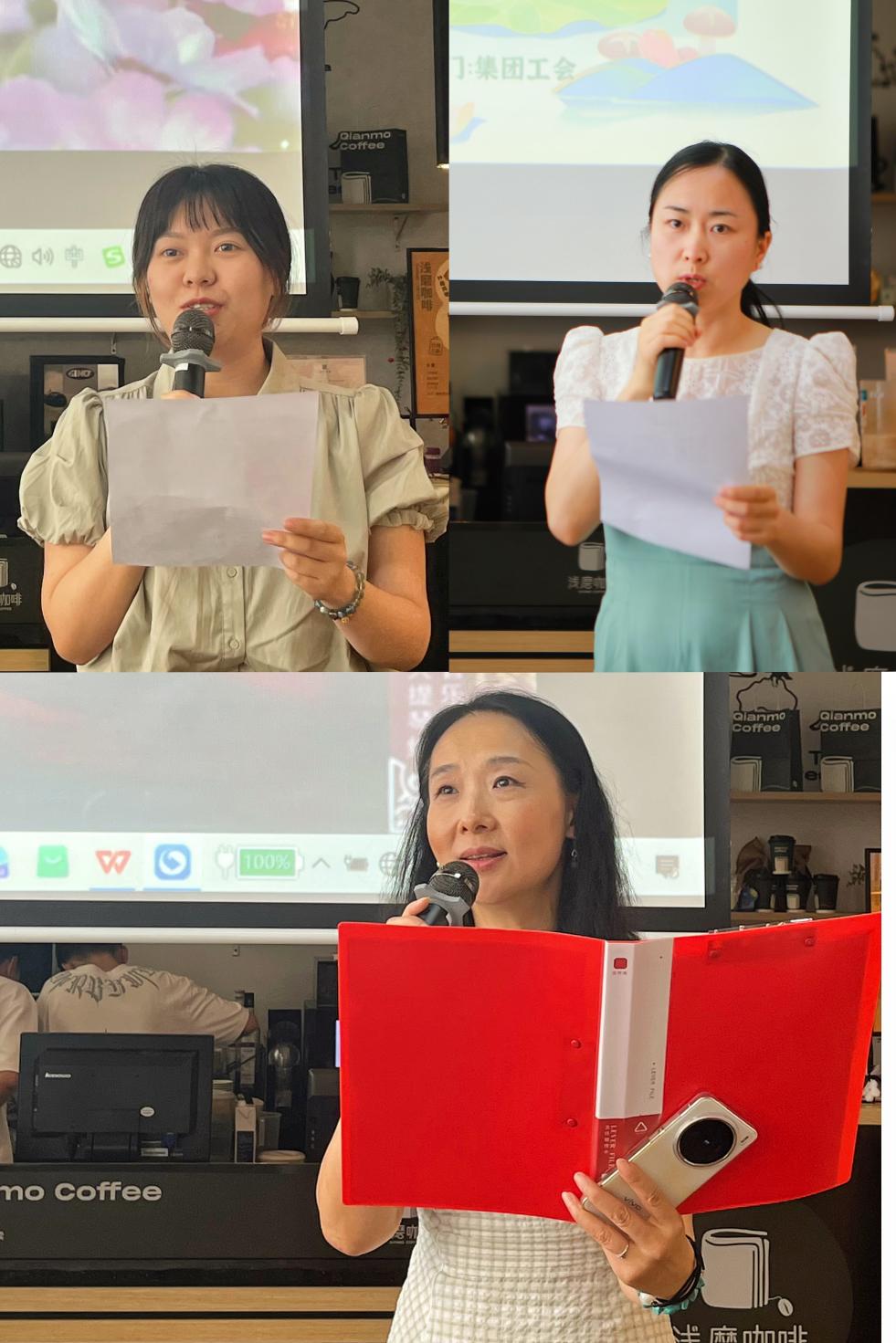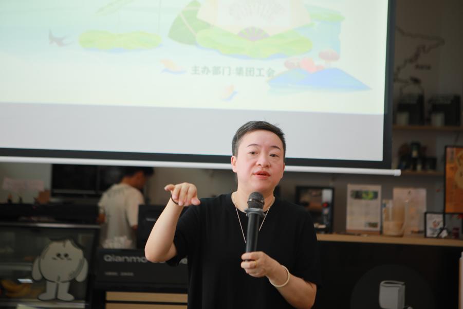 活動以詩詞朗誦、九丘夏日新品品鑒以及畫團扇三種創新形式,為現場干部員工們帶來一場充滿傳統文化韻味的節日盛宴。詩詞朗誦環節,集團工會副主席姚晞、電商運營中心陳曉萱、資產運營部周清玉三位朗誦者依次登臺,分別深情朗讀了《端午的雨紛紛揚揚》《你是人間的四月天》《山居秋暝》等經典詩篇,她們用激昂的情感和優美的嗓音,將詩意中的文化精神內核演繹得淋漓盡致。夏日新品品鑒環節,咖啡烘焙項目組負責人祝鵑講解了六款不同風味的夏日新品,并邀請干部員工進行品嘗打卡,解鎖舌尖上夏日新風味。手繪團扇環節,武漢市分公司王穎超向干部員工介紹了扇繪基本知識和技巧,并指導大家拿起手中的毛筆,細致入微地勾勒出扇面的竹林紋理和文字脈絡。經過一番努力,一把把造型精美、獨具匠心的手繪團扇制作完成,展現了干部員工們的藝術才華。