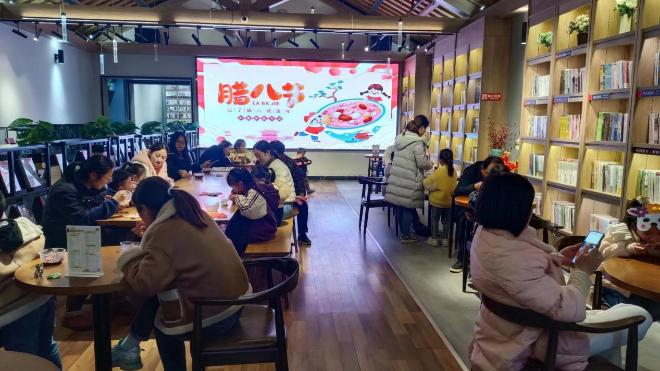 活動(dòng)以“繪本閱讀+創(chuàng)手工+品嘗美食”的組合形式展開(kāi)。活動(dòng)現(xiàn)場(chǎng),連鎖店員工為孩子們精心挑選了《臘八節(jié)》和《牙齒上的大壞蛋》兩本繪本,通過(guò)生動(dòng)有趣的講解,讓孩子們了解“臘八節(jié)”的起源、習(xí)俗和傳統(tǒng)美食,同時(shí)引導(dǎo)他們認(rèn)識(shí)到保護(hù)牙齒的重要性。為了使孩子們更好感受臘八氛圍,連鎖店還制作了臘八粥樣品,邀請(qǐng)孩子及家長(zhǎng)們一同品嘗。隨后的創(chuàng)手工環(huán)節(jié),家長(zhǎng)與孩子們齊心協(xié)力,利用彩紙、顏料、橡皮泥等材料制作可愛(ài)的卡通面具。在輕松愉快的氛圍中,孩子們發(fā)揮想象力,創(chuàng)造出形態(tài)各異的面具,他們互相欣賞、交流作品,現(xiàn)場(chǎng)歡聲笑語(yǔ)不斷。