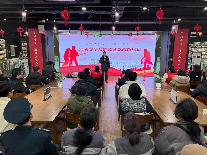 培訓由中安防火專職講師李江偉主講,他結合國內近期發生的重大火災事故,深入淺出地講述了消防安全的重要性。重點講解了消防應急預案的等級劃分、預案主要內容、火災情況設定和后期處置等,并結合書城實際強調了各類火災危害、預防方法、火災逃生注意事項及消防器材使用方法等消防安全知識。同時現場演示了滅火器的使用方法,指導員工實踐操作,學習氛圍熱烈活躍。