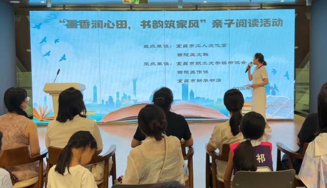 8月22日,由宜昌市工人文化宮、西陵區文聯主辦,宜昌市職工文學讀書會、西陵區作協、新華書店宜昌市分公司聯合承辦的“墨香潤心田 書韻筑家風”親子閱讀活動在屈原書城舉行。西陵區文聯秘書長孔令麗作為特邀嘉賓出席,眾多職工親子家庭積極參與。