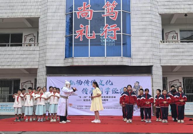 活動在茨河鎮中心學校領導熱情洋溢的致辭中拉開帷幕。隨后,現場舉行了莊重而富有儀式感的“行拜師禮”環節,學生們通過傳統禮儀,深刻感悟尊師重道的中華美德。在經典的誦讀聲中,全體參與者齊聲誦讀《論語》精選篇章,瑯瑯書音回蕩在校園,先賢的智慧跨越時空浸潤心田。緊接著,手勢舞《孔夫子的話》以新穎活潑的形式演繹了國學精髓,而情景劇《和孔子的對話》則通過古今對話的創意編排,生動展現了孔子思想的時代價值,將現場氣氛推向高潮?;顒幼詈?,分公司及相關單位為積極參與活動的學生們頒發獎品,鼓勵同學們持續閱讀,傳承經典。