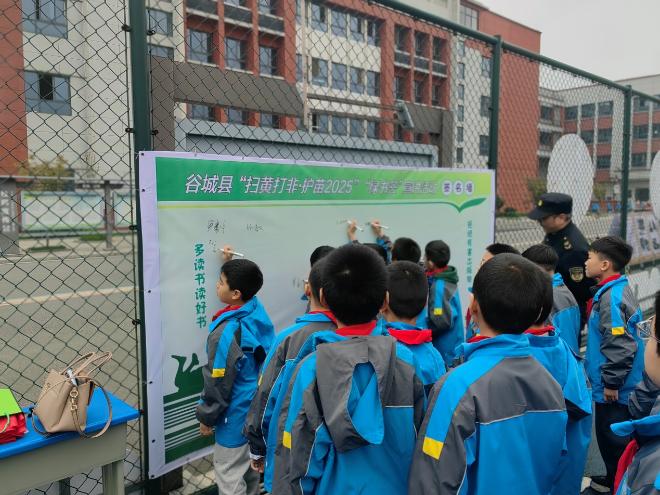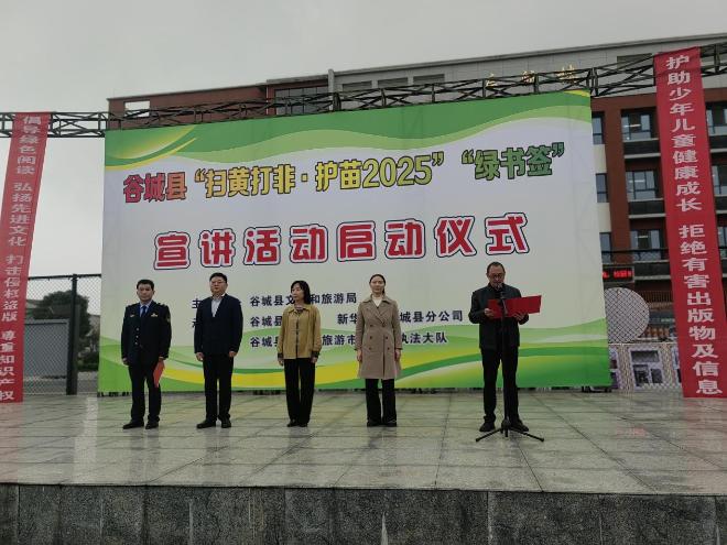 10月16日,由谷城縣文化和旅游局主辦,縣教育局、新華書店谷城縣分公司共同承辦的2025年“掃黃打非·護苗2025”“綠書簽”宣傳活動啟動儀式在縣第二實驗小學順利舉行。縣文旅局、縣教育局、分公司等相關單位負責人,以及縣第二實驗小學800余名師生參加了本次活動。