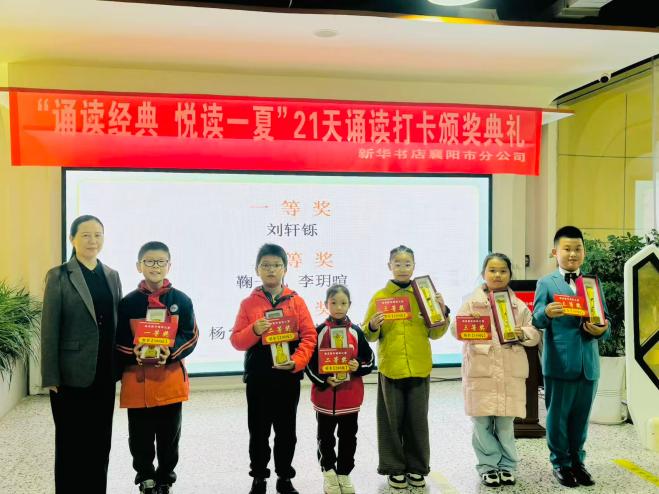 近日,襄陽市分公司在青少年宮店舉辦“誦讀經典 悅讀一夏”暑期21天誦讀打卡活動頒獎儀式,80余名家長和學生齊聚一堂,共同見證孩子們的閱讀成果。分公司紀委書記唐瀛參加儀式并為獲獎者頒獎。