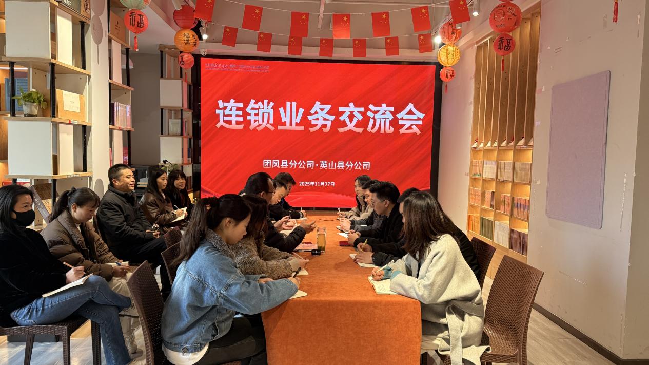 11月27日,團風縣分公司分管連鎖業務經理蘇彬率連鎖店業務骨干一行來到英山縣分公司開展連鎖業務交流活動。雙方圍繞業務拓展與運營提升等展開深入交流,共同探索發展新路徑。