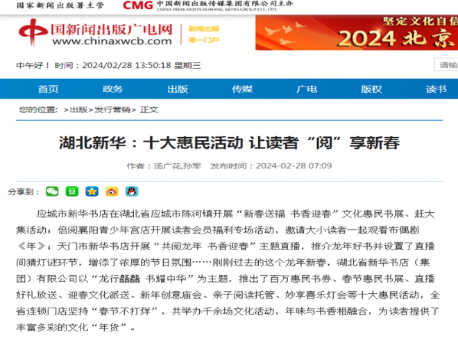 中國新聞出版廣電報∣湖北新華:十大惠民活動 讓讀者“閱”享新春
