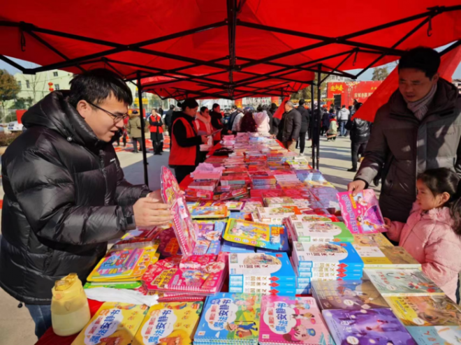 應城市新華書店在陳河鎮開展“新春送福 書香迎春”文化惠民書展、趕大集活動。湖北新華供圖