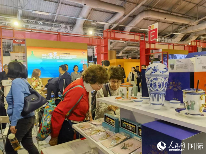 巴黎市民在“倍悅文創(chuàng)”展臺前。人民網(wǎng)記者 于超凡攝