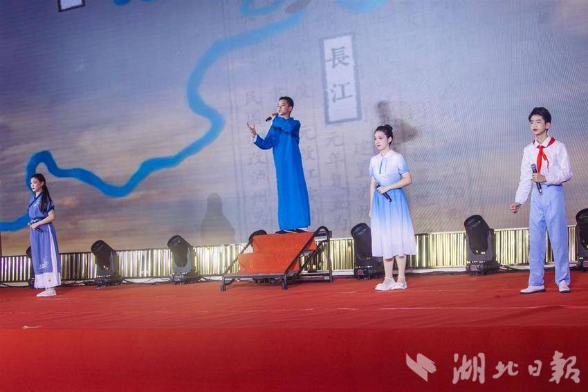 《可愛的中國》《爺爺?shù)娜龒{號(hào)子》《我家就在長江邊》《我們都是江河的孩子》《長江之歌》《守護(hù)長江》《千古長江情》……學(xué)生們帶來的節(jié)目,包括朗誦、歌曲、舞蹈、說唱、器樂、書畫、情景劇等多個(gè)門類,弘揚(yáng)愛國主義精神,表達(dá)對(duì)長江生態(tài)的關(guān)注、對(duì)長江文化的熱愛。活動(dòng)現(xiàn)場(chǎng),為“探尋璀璨長江文明,傳承中華歷史文脈”研學(xué)行活動(dòng)授旗。