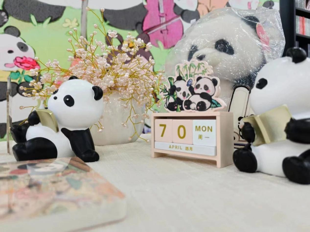 店內(nèi)有關(guān)于熊貓的圖書(shū)、文創(chuàng)產(chǎn)品500余種,開(kāi)業(yè)一個(gè)月以來(lái)銷(xiāo)售近2萬(wàn)元。店內(nèi)從整體設(shè)計(jì)到裝修及商品陳列都著重凸顯“熊貓”元素,裝潢色調(diào)以清新的綠色為主,隨處可見(jiàn)陳列著的熊貓萌物。書(shū)店內(nèi),有用毛絨玩具精心打造的“竹子”,還有專(zhuān)門(mén)設(shè)置的打卡區(qū),供讀者們和可愛(ài)的熊貓合影留念。