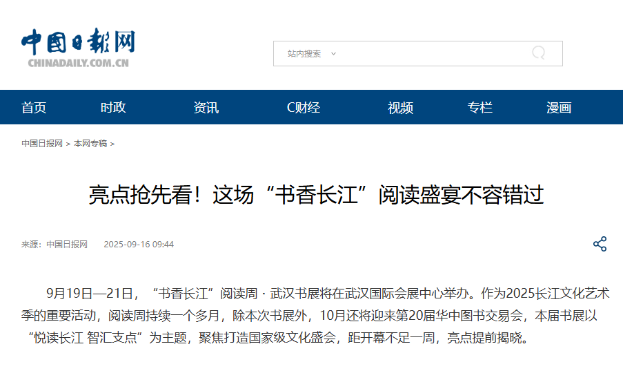 中國(guó)日?qǐng)?bào)網(wǎng) | 亮點(diǎn)搶先看!這場(chǎng)“書(shū)香長(zhǎng)江”閱讀盛宴不容錯(cuò)過(guò)