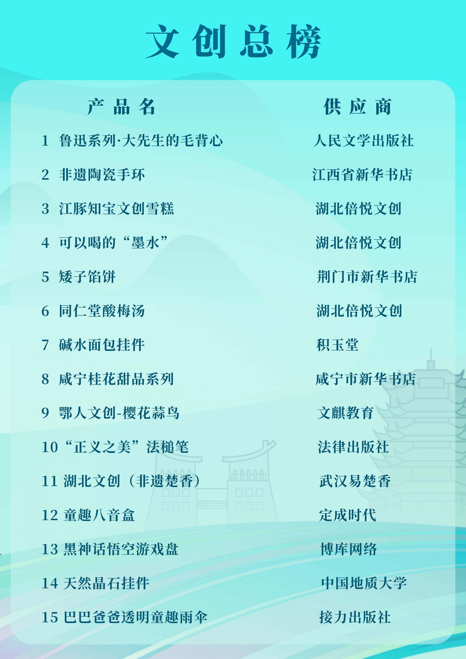 “書香長江”閱讀周?武漢書展文創銷售總榜