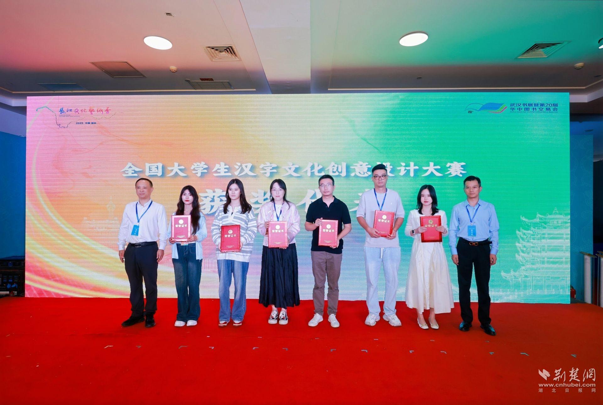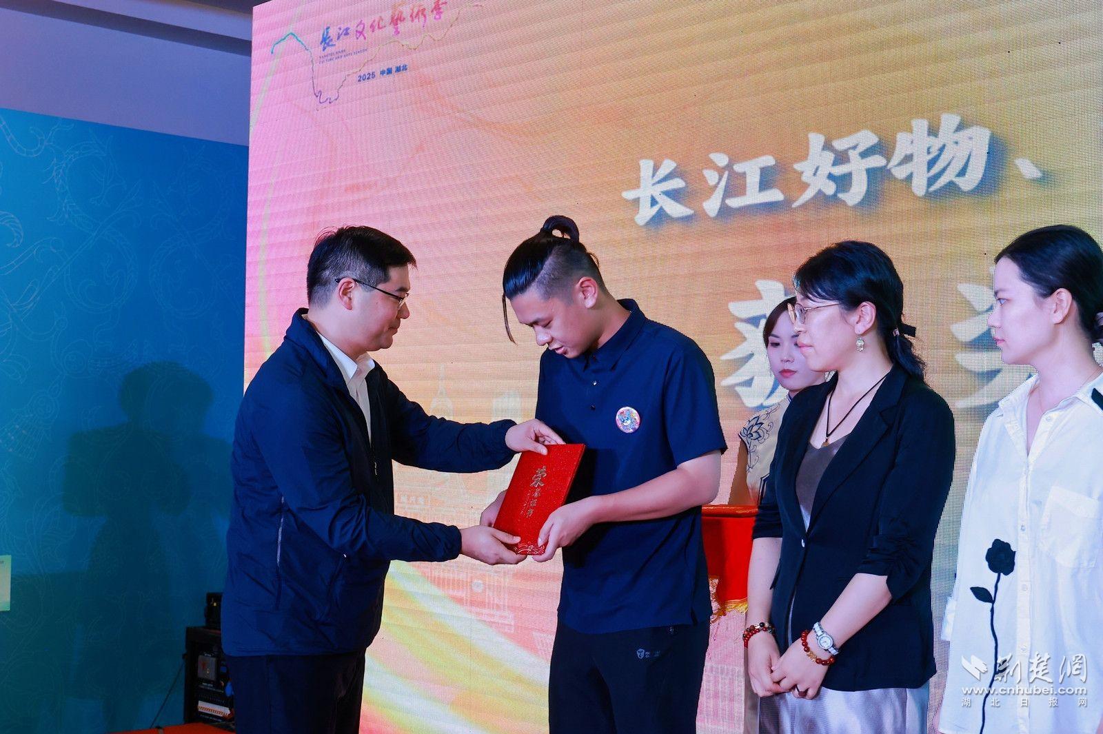 活動現場,首屆“漢字文化周·楚天杯”全國大學生文化創意設計大賽和“長江好物系列評選”的獲獎作品發布與頒獎環節備受矚目。湖北省新華書店(集團)有限公司黨委委員、副總經理柏濤、漢字文化周活動組委會主任楊文博為大學生大賽獲獎者頒獎,年輕創作者們以創新思維融合漢字文化與現代設計,展現無限創意潛力;中國出版傳媒商報社副總經理倪成、湖北省曲藝家協會主席陸鳴為“長江好物”獲獎單位和個人頒獎。獲獎作品涵蓋多個領域,體現長江流域文化內涵與藝術魅力,為產業發展樹立標桿。