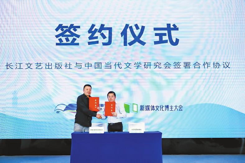 戰略合作的達成標志著行業融合邁向新階段。在新媒體文化博主大會現場,長江文藝出版社有限公司與中國當代文學研究會簽署合作協議,由中國當代文學研究會組成編委會,共同策劃出品“新時代文學批評前沿”及“新銳作家作品集”系列叢書。