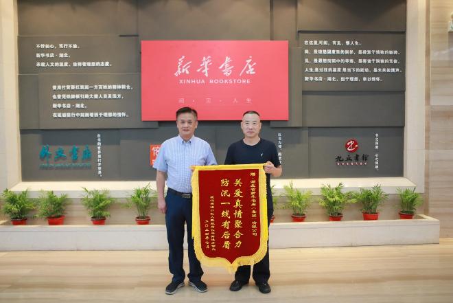 10月17日上午,武漢市硚口區(qū)人民政府長豐街道辦事處將一面書寫“關(guān)愛真情聚合力、防汛一線有后盾”的錦旗送到新華書店集團(tuán)總部,感謝新華書店集團(tuán)對防汛工作的大力支持,集團(tuán)黨委副書記、監(jiān)事會主席、紀(jì)委書記時(shí)軍代表集團(tuán)接收錦旗。