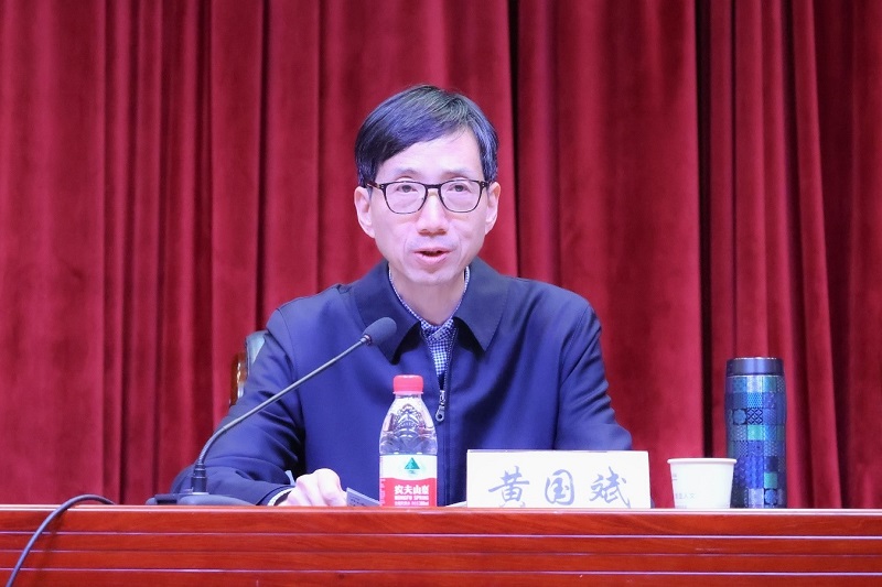 集團、股份公司黨委書記、董事長黃國斌代表公司黨委向受到表彰的先進集體和優秀個人表示熱烈祝賀,向辛勤付出的全體干部職工表示衷心感謝,并作了題為《擎旗爭先 揚楫奮進 奮力擔當湖北文化產業高質量發展排頭兵》的工作報告。