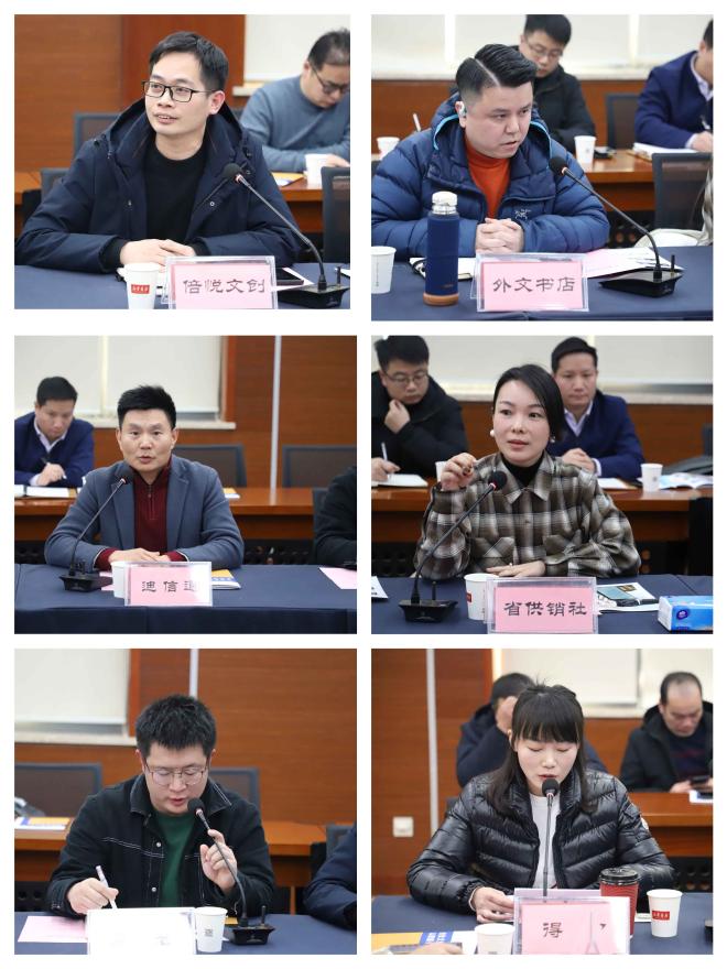 集團倍悅文創公司主要負責人劉圣生、外文書店經理助理舒展,以及來自迪信通、省供銷社、上海晨光文具、得力、酷比文化等供應商代表分別進行了交流發言。參會代表們對新華書店集團的渠道優勢、服務能力、線上線下融合發展給予充分認可,對集團2024年多元文創業務發展目標充滿信心,并表示將在供貨價格、人力資源、營銷推廣等方面予以積極支持。