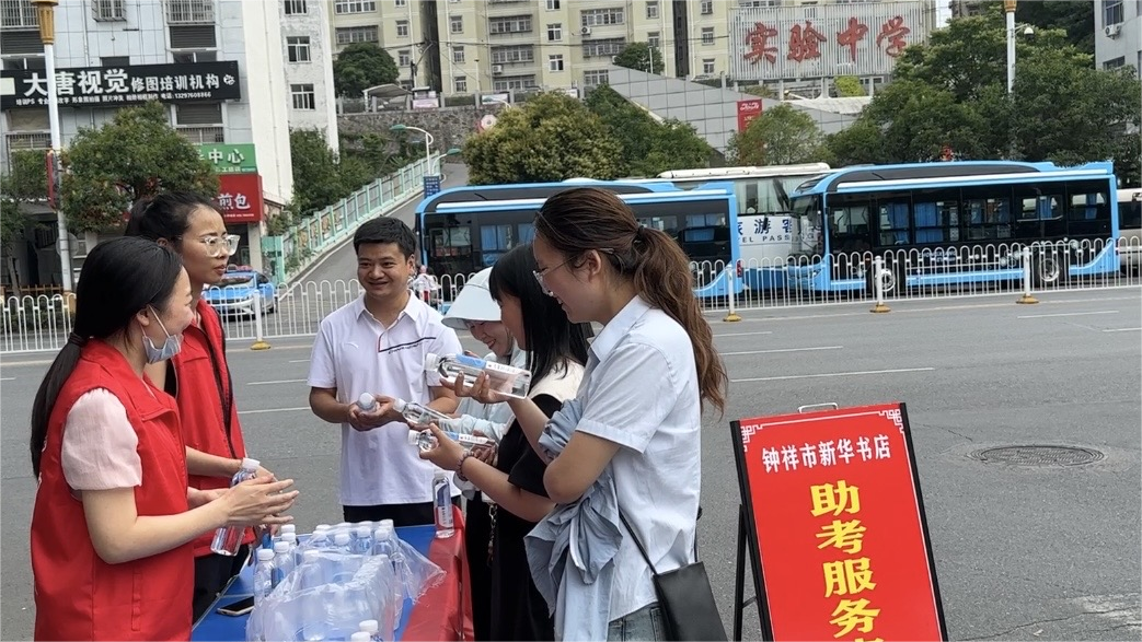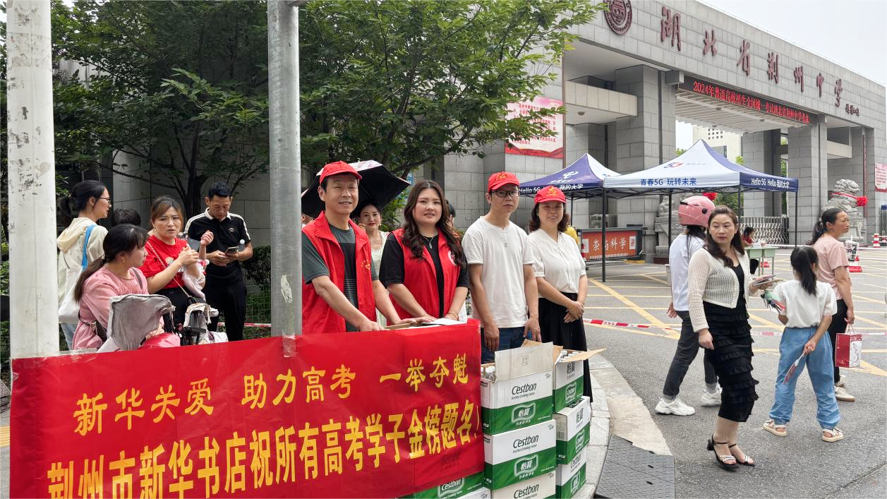 荊州市分公司在荊州中學門口設立“新華關愛?助力高考”愛心送水站,為正在緊張備考的考生和家長提供免費飲用水,傳遞了國有文化企業的溫暖與關懷,體現新華書店積極履行社會責任、回饋社會的擔當精神。
