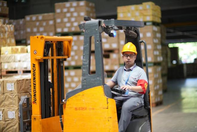 新華書店集團充分發揮黨支部戰斗堡壘和黨員先鋒模范作用,直面教材到貨周期緊張的挑戰,物流分公司全體員工隨時待崗,黨員干部沖鋒在前,與上下游單位緊密協作,從保障收貨、分揀到發運每一環節有序運轉。