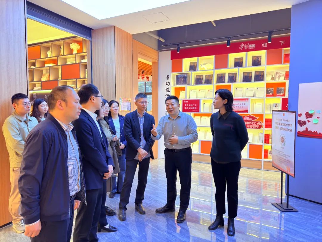 郭靖一行先后實地參觀考察了外文書店、倍閱書店·中南大南湖店。參觀過程中,詳細了解了外文書店以及倍閱書店的發展歷程、經營理念、主題場景打造以及文化活動組織等方面的做法和成果,對外文書店4樓館店融合模式運營的“城市書房”、5樓面向青年群體重點打造的青春書館和線上線下一體化運營特色,以及倍閱書店充分圍繞高校師生需求,以“文化+”模式,打造“學習強國”學習驛站、線上線下開展大學生紅色共讀活動、建設大學生“就業實訓”“創新創業”平臺等方面舉措給予高度評價。